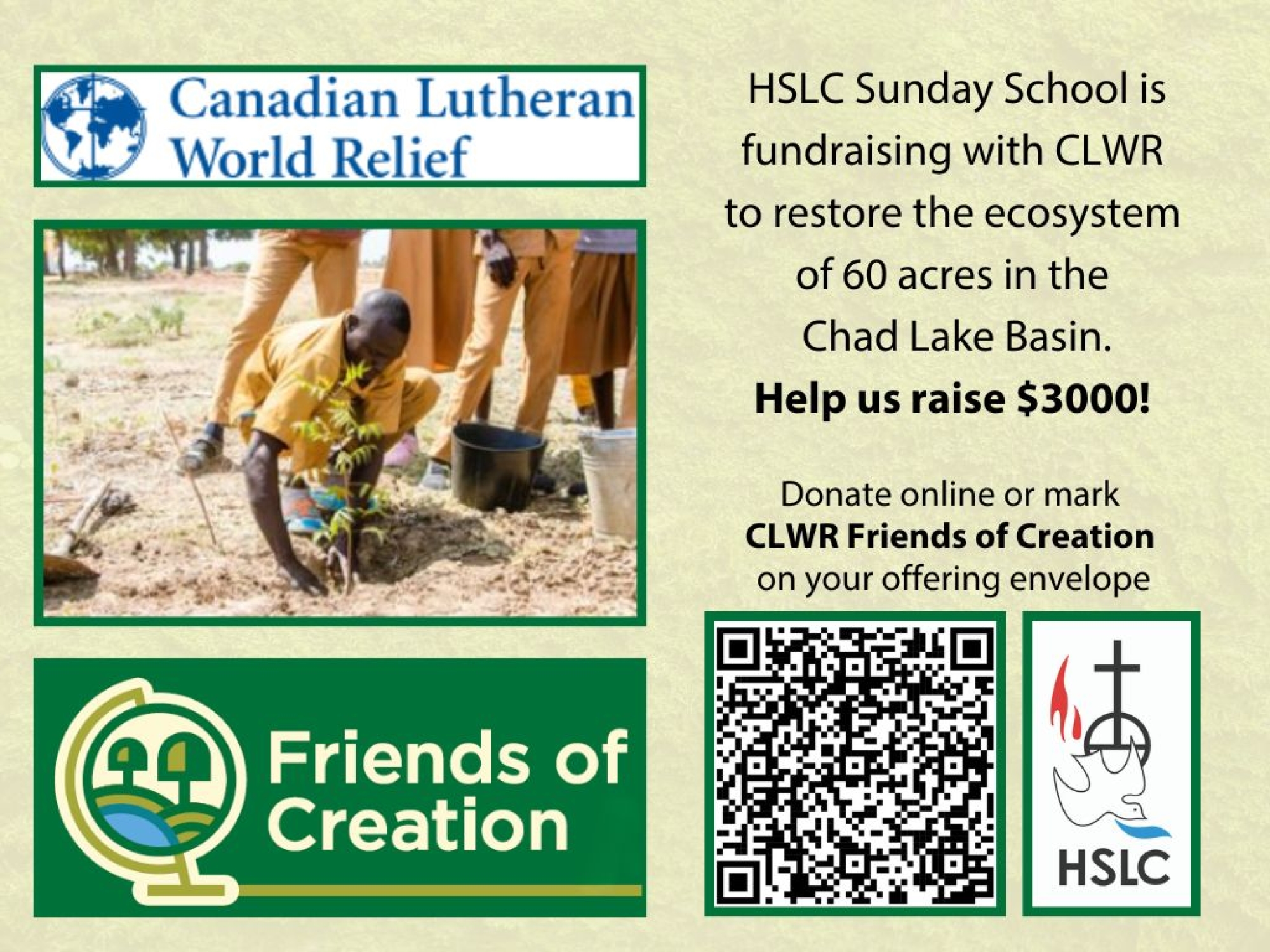 Joining congregations across the country in Canada Lutheran World Relief's Friends of Creation campaign, our HSLC Sunday School has pledged to sponsor restorative work in the Chad Lake Basin!