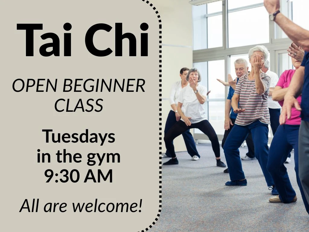 All are welcome to join free weekly Tai Chi classes at HSLC, led by Tai Chi master Lin!